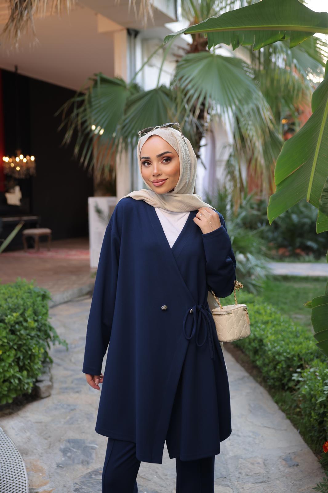 Üst tunik modeli yandan bağlamalı ve düğme detayı